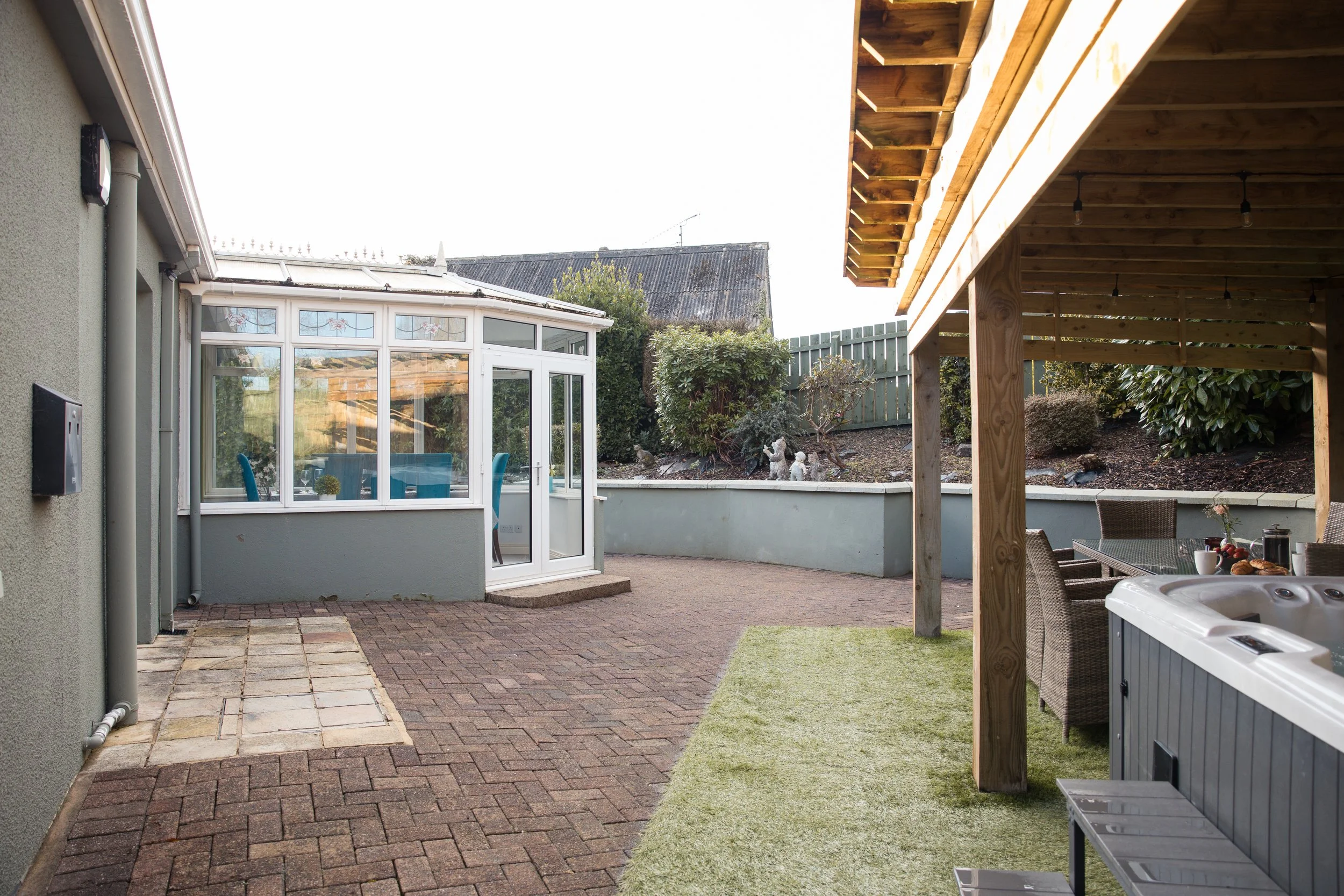 In the back garden there is a private outdoor seating are and hot tub.